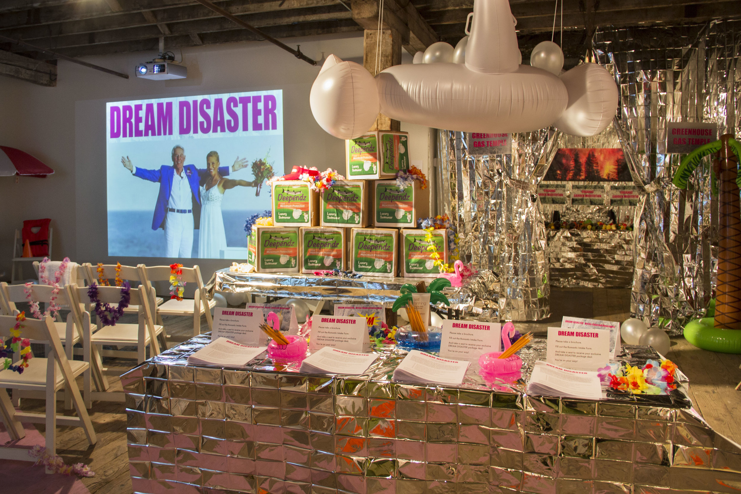 DREAM DISASTER is a post-apocalyptic feminist performance and installation that satirizes society’s collective apathy towards climate change. It imagines a dystopian realm in which destination weddings take place in the world’s worst ecological disaster zones.